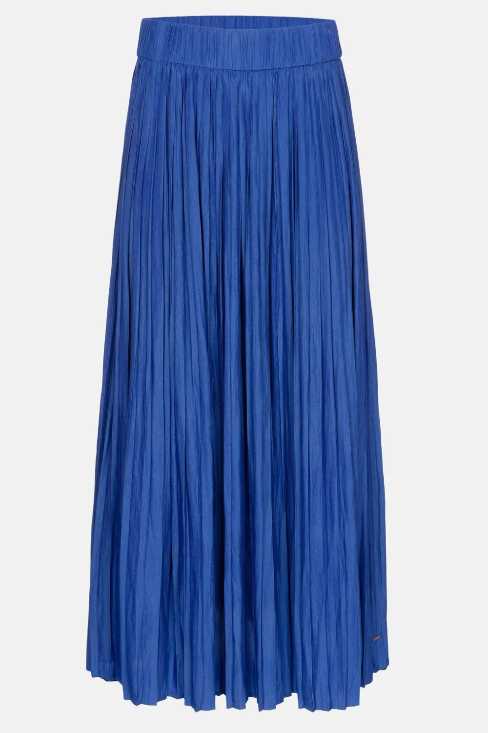 Blauwe Midirok Met Plooitjes In Fijne Glansstof.Een Elegant Uitwaaierend Snit Met Een Taille-Elastiek.Mooi Met Een Pull …