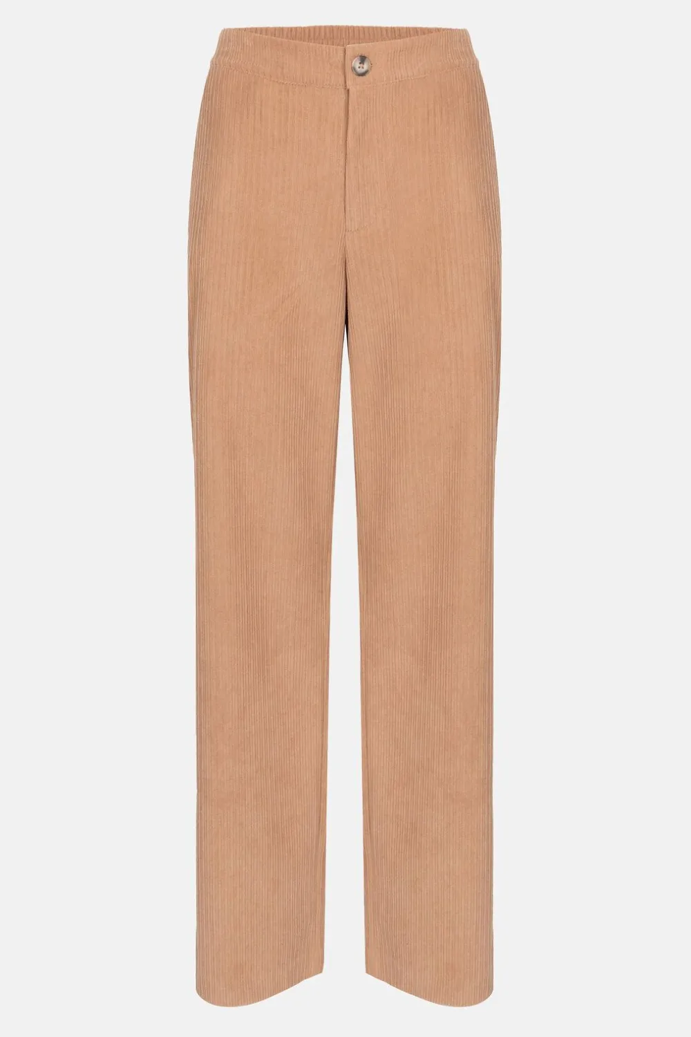 Bruine Damesbroek In Zacht En Soepel Ribfluweel.Een Elegante Snit Met Rechte, Wijde Broekspijpen.Met Comfortabele Zijzak…