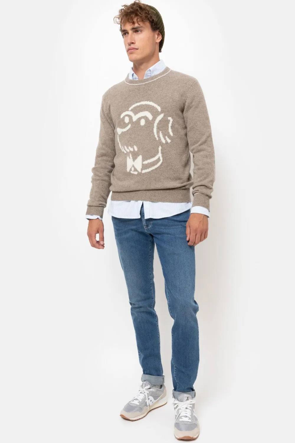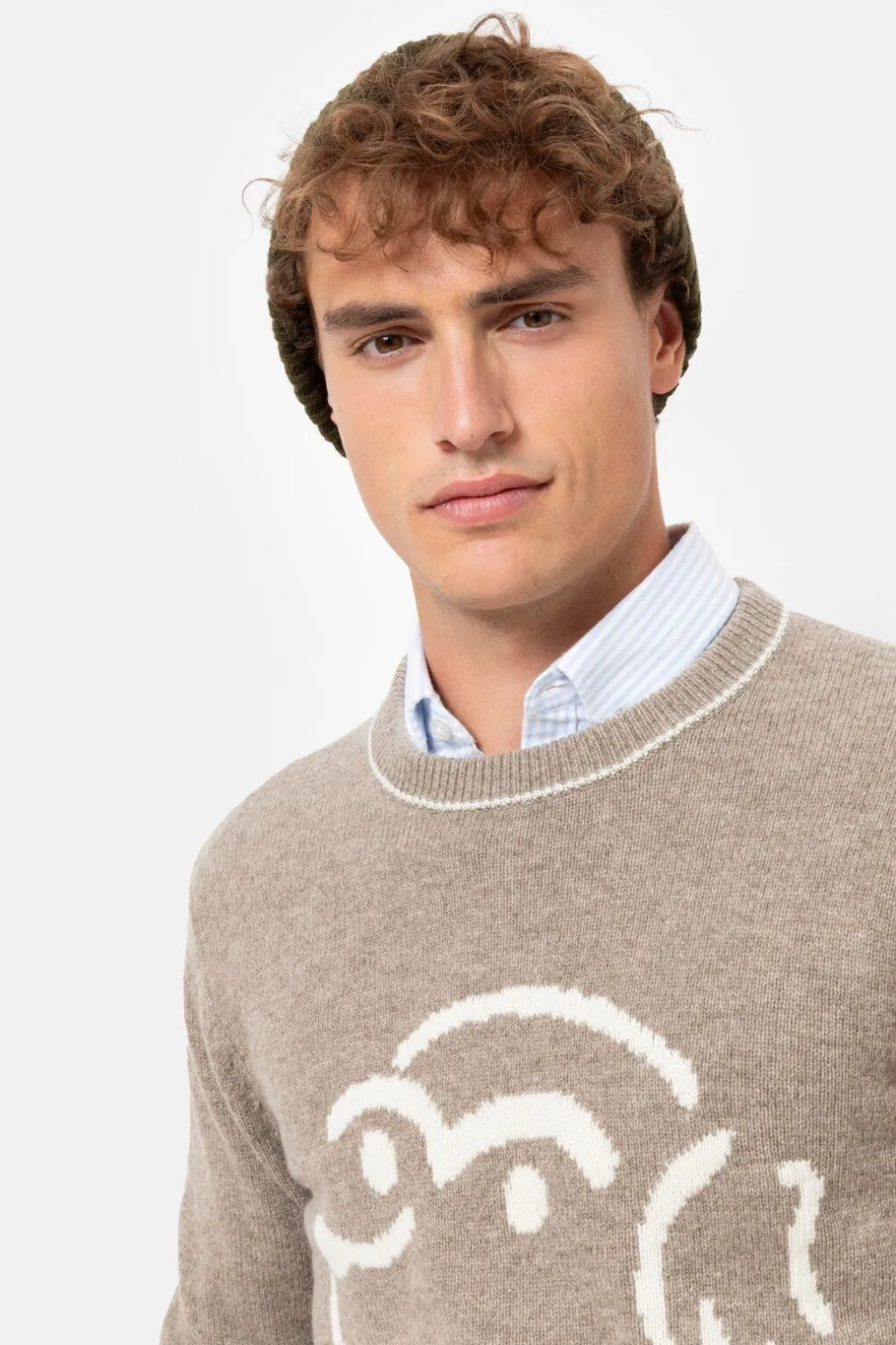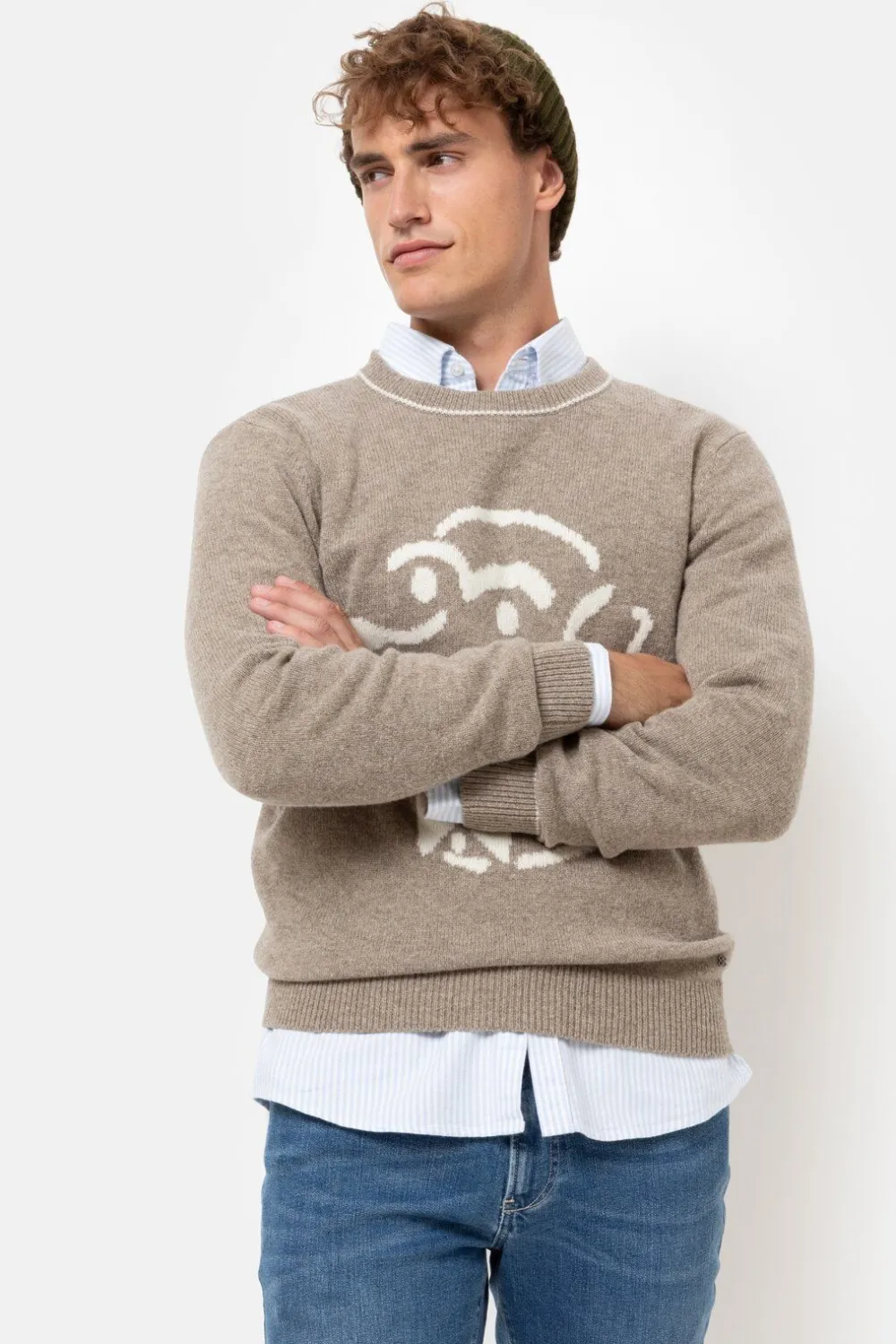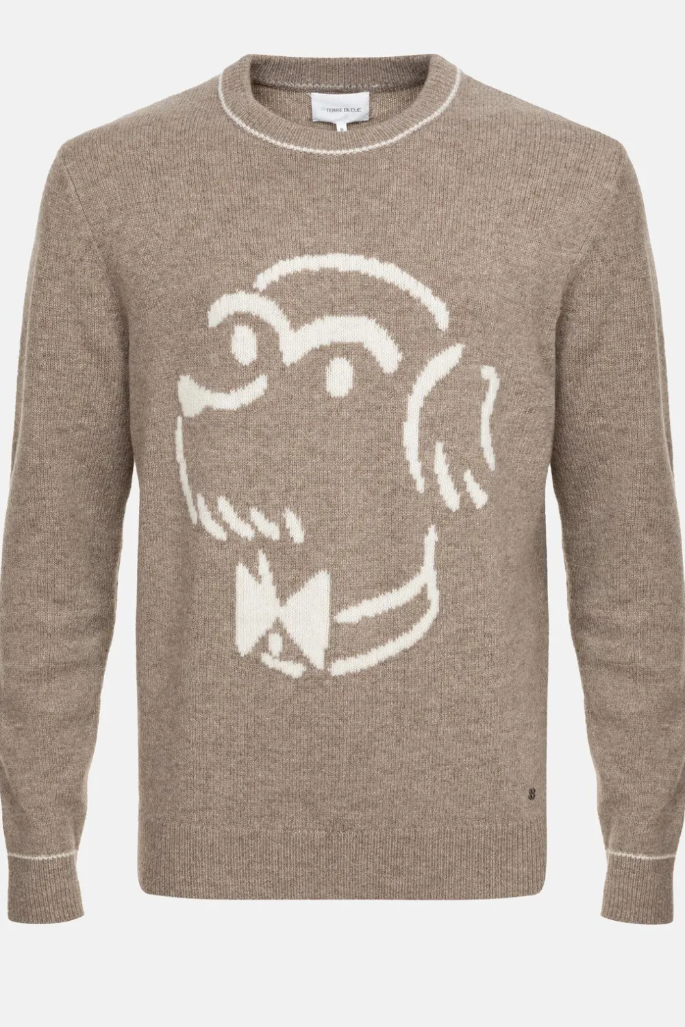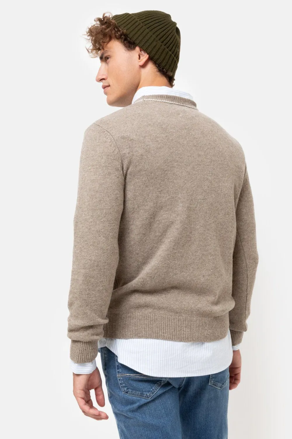 Bruingrijze Gebreide Pull In Wol En Gerecyclede Stof.