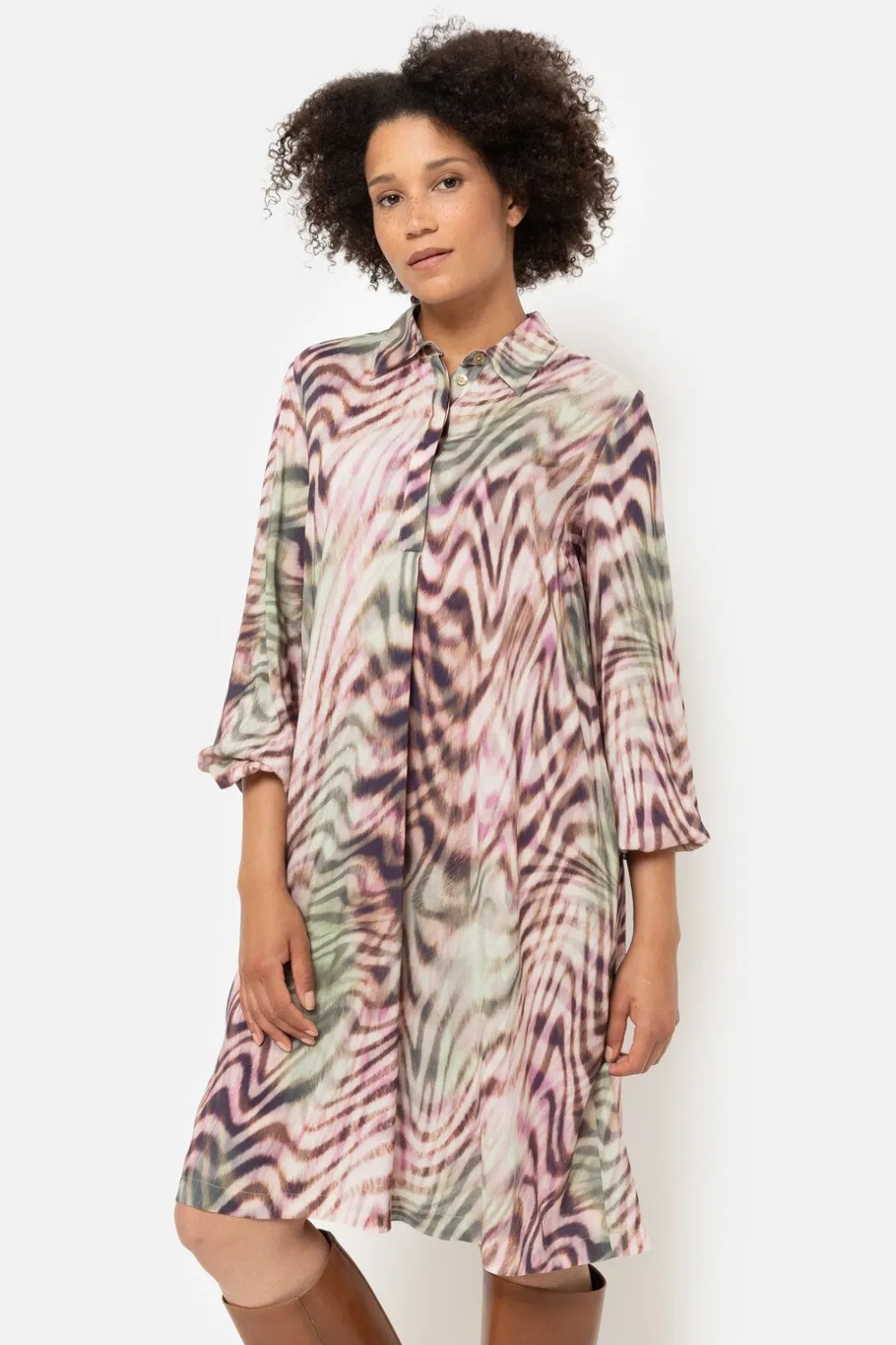 Paars-Groen Kleedje In 100% Fijn En Soepel Viscose.Losse Fit Met Steekzakjes En Een Elegante Hemdkraag.Combineer Trendy …