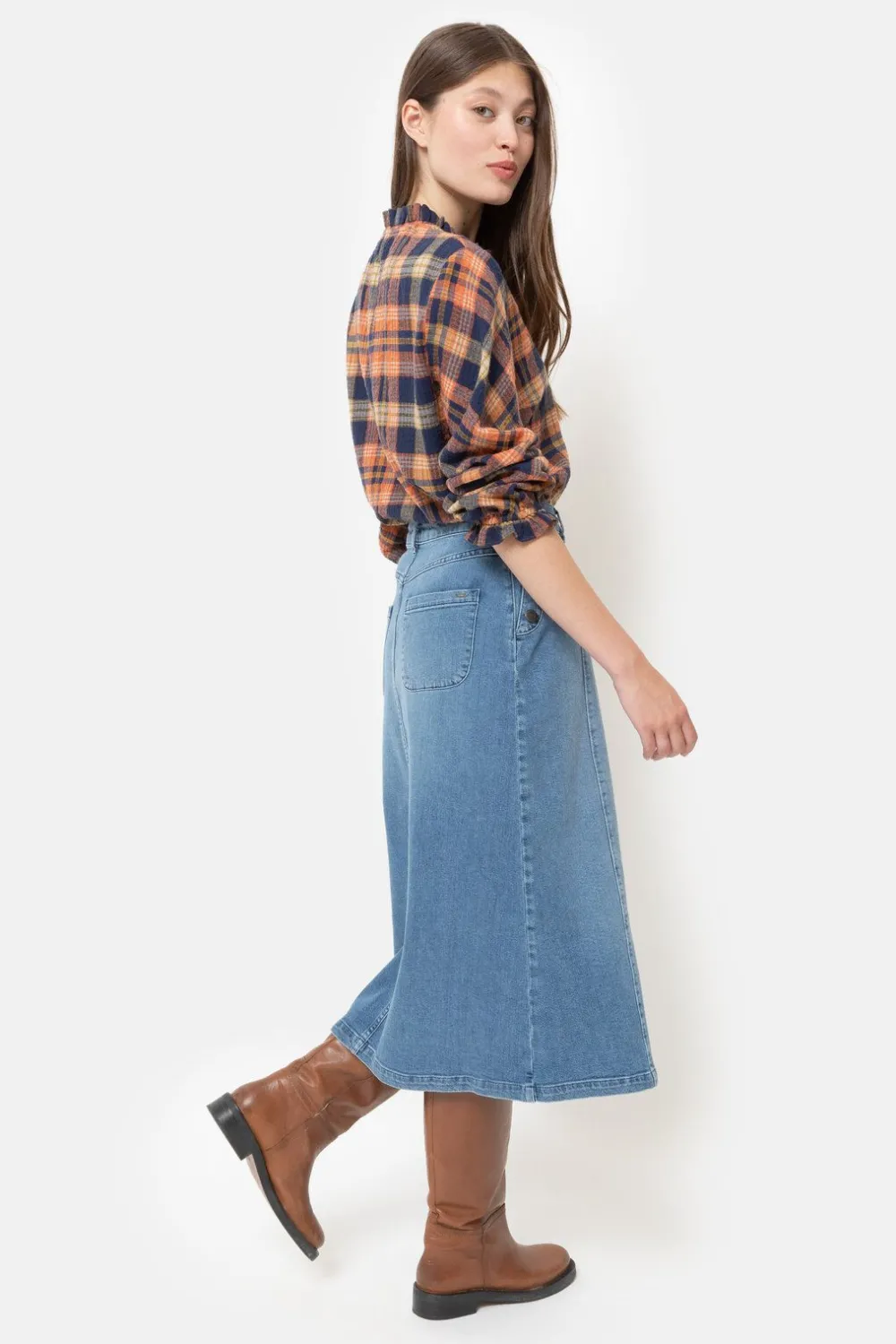 In Een Zachte Jacquardstof Met Oranje-Blauwe Ruiten.