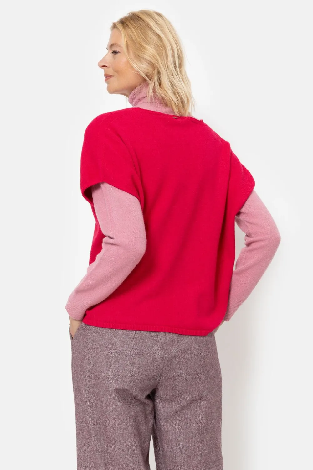 Style Met Een Paarse Broek En Een Oudroze Coltrui.