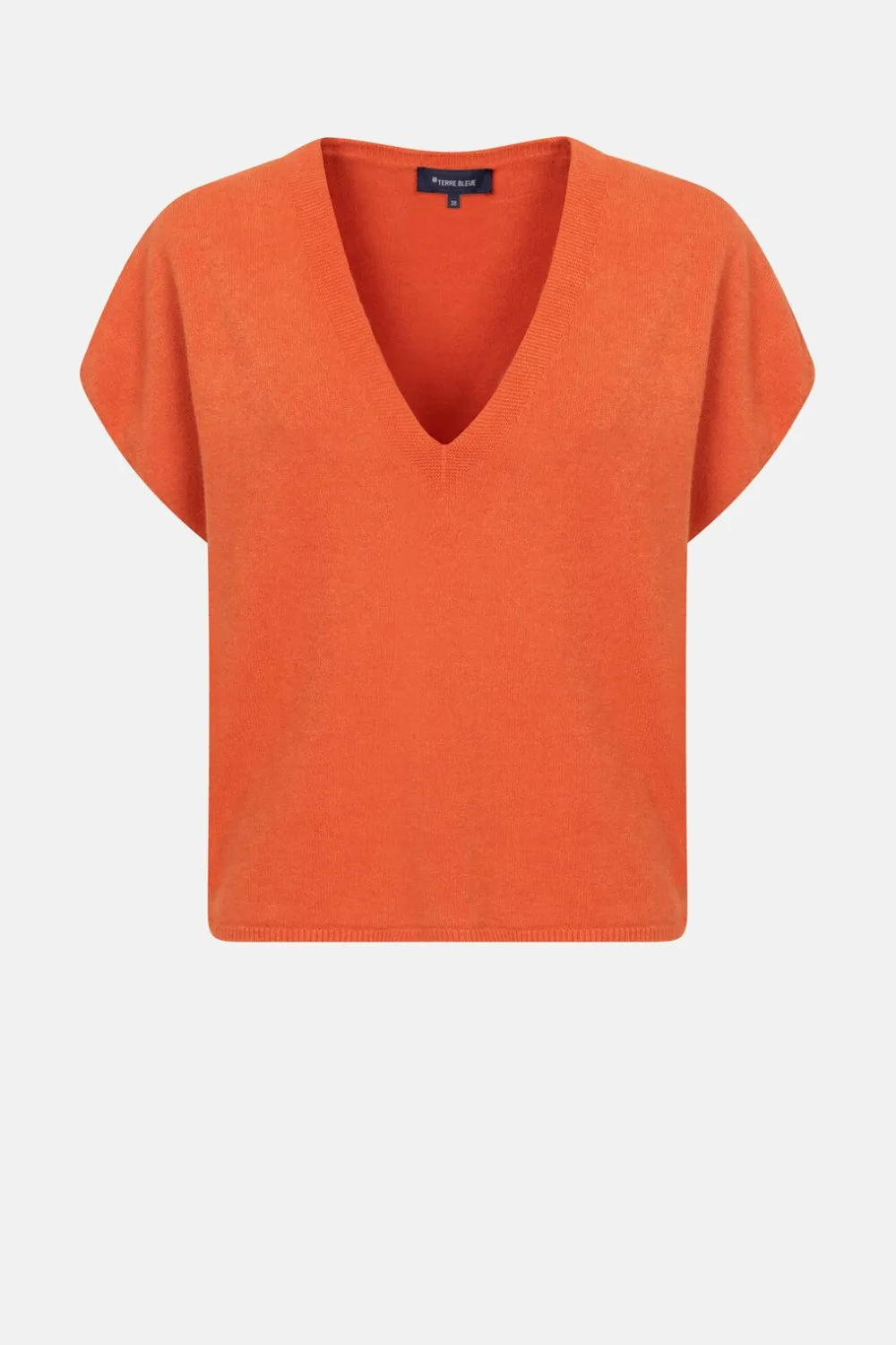 Oranje Mouwloze Pull In Een Zachte Viscosemix.Een Boxysnit Met Kapmouwen En Een Wijde V-Hals.Mooi Boven Een Roestbruine …