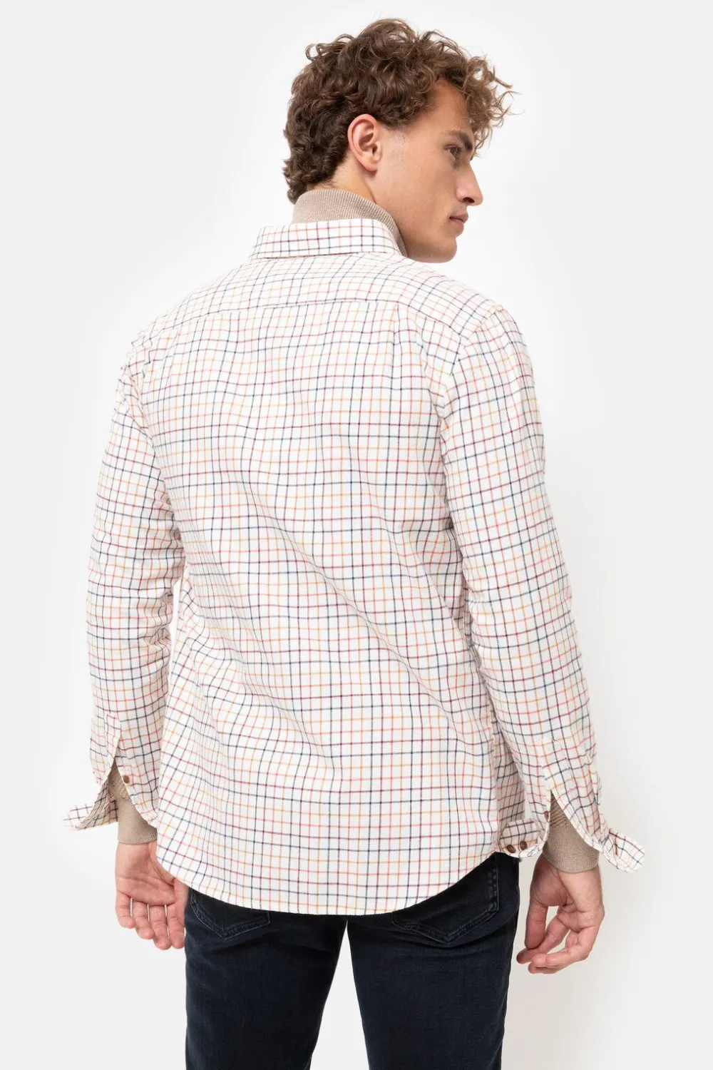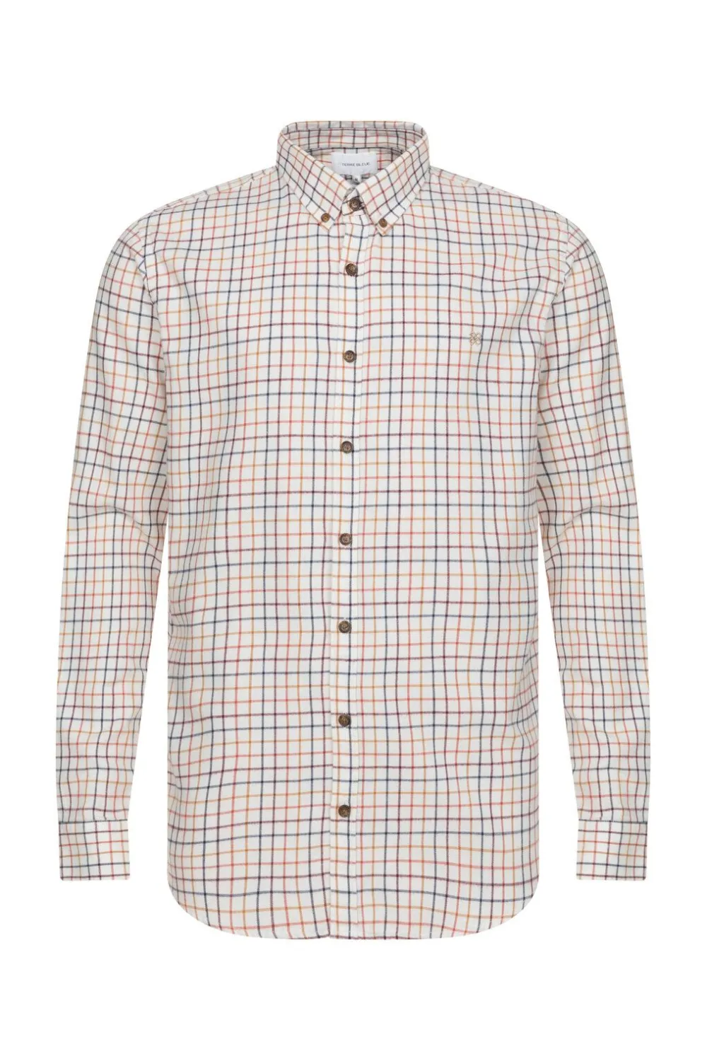 Lichtbeige Mannenhemd In 100% Katoenflanel.Met Gekleurde Ruiten In Rood, Geel, Donkerblauw, …Draag Casual En Chic Bove…