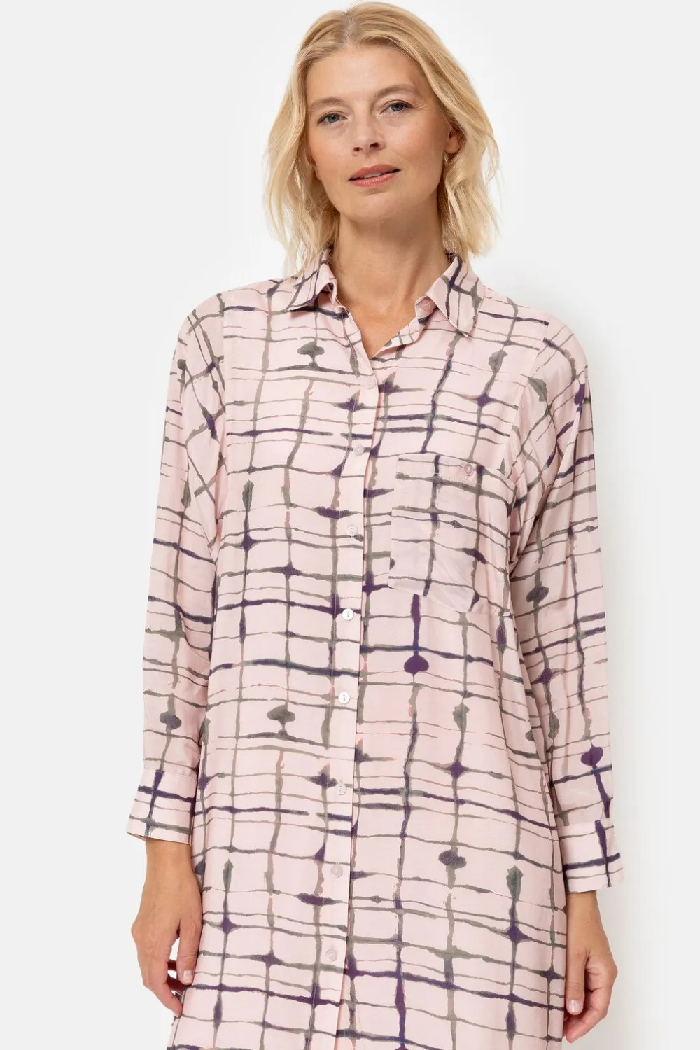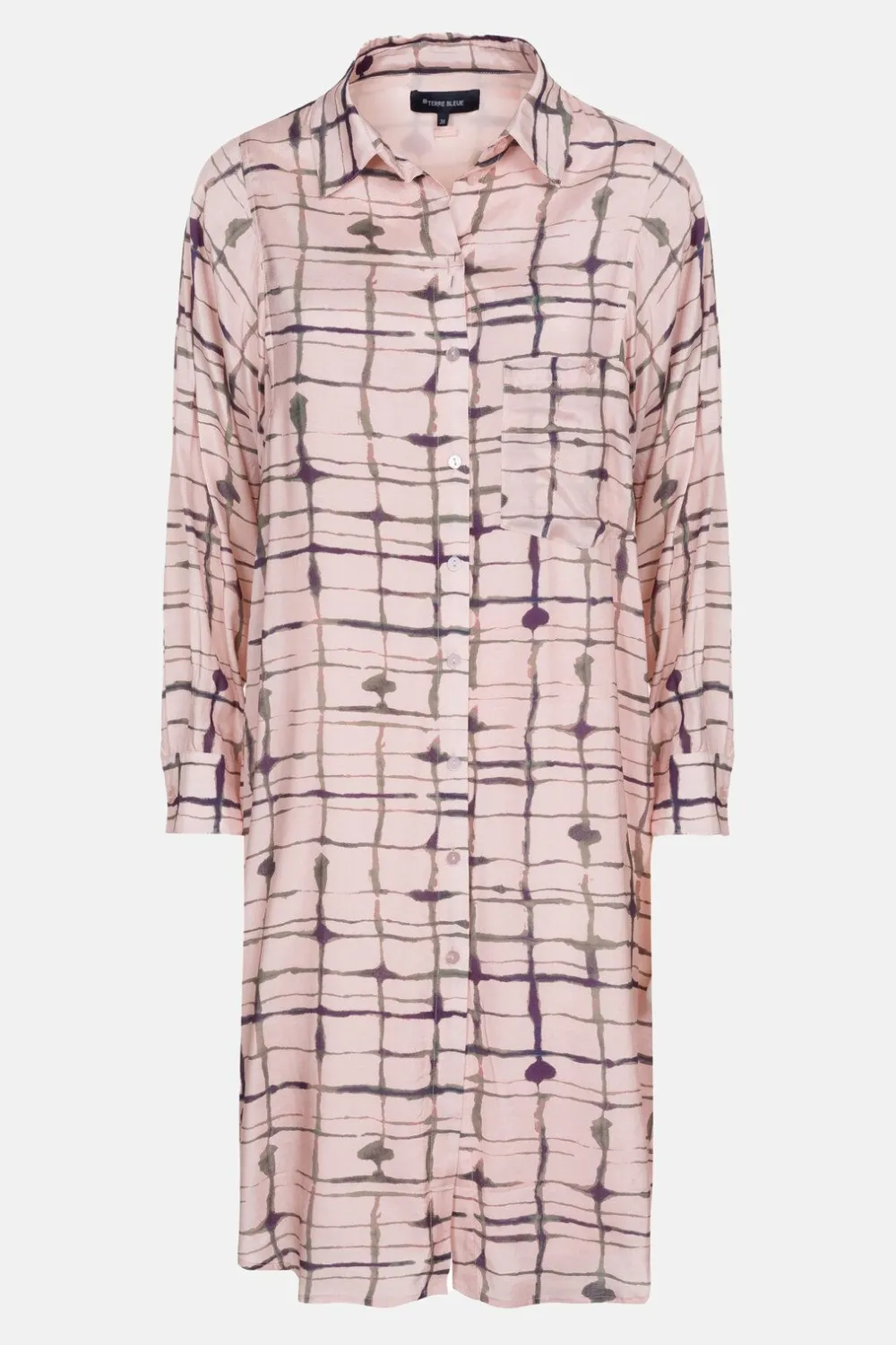 Roze Midi Hemdkleedje In 100% Fijn Viscose.Een Halflange Snit Met Een Voering En Elegante Slip.Met Artistieke Grijs-Paar…