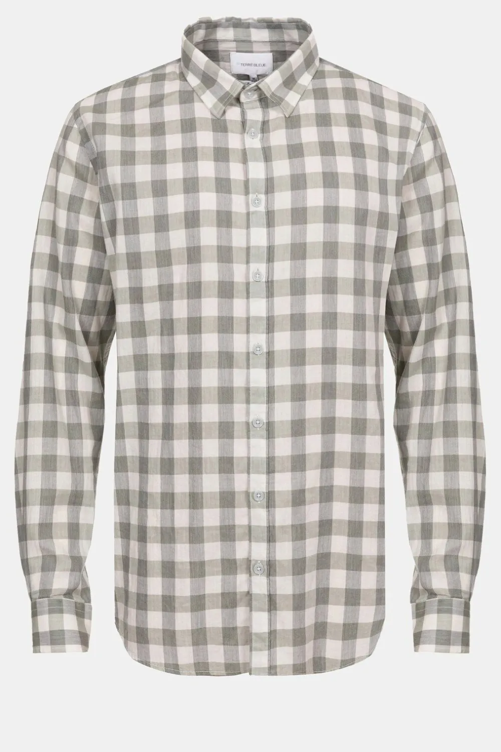 Kaki Groen Geruit Heren Hemd In 100% Fijn Katoen.