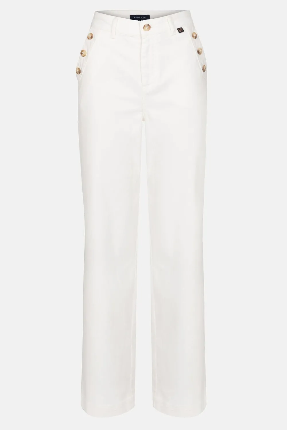 Ecru Damesjeans In Katoen Met Wat Stretch In.Vrouwelijke Loose Fit Met Drie Knopen Aan De Zakken.Stylish Met Een Blauwe,…