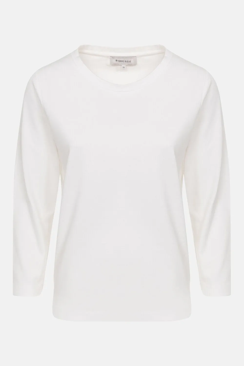 Witte Top In Biokatoen En Modal Met Wat Stretch.De Mouwen Hebben Een Elegante 7/8 Lengte.Match Met Een Witte Broek En Bl…