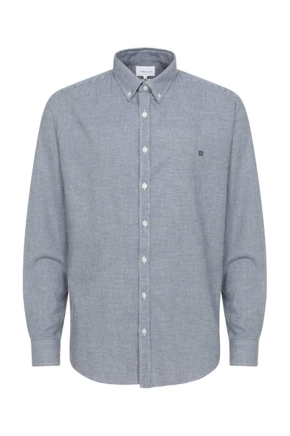 Navyblauw Geruit Flanellen Hemd Van 100% Katoen. Een Geklede Slim Fit In Een Zeer Zachte, Fijne Stof.Met Fijne Witte Kno…
