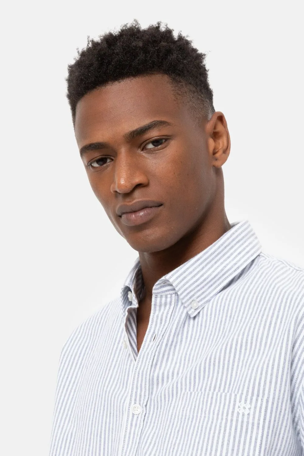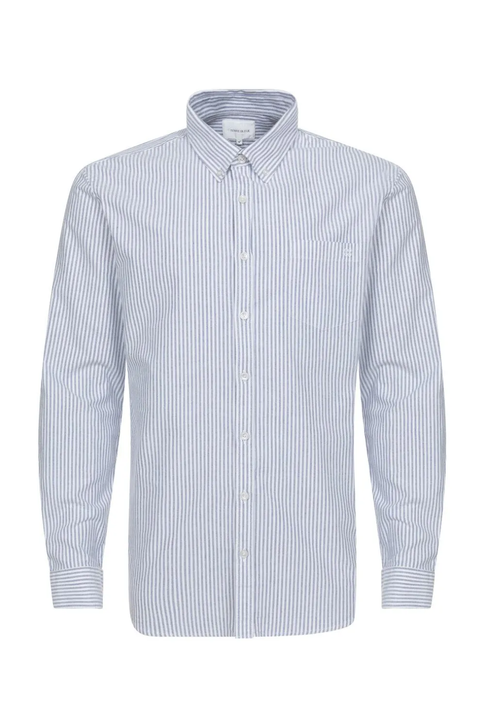 Blauw Gestreept Flanellen Hemd Van 100% Katoen.Een Comfortabele Regular Fit Met Witte Knoopjes.Een Borstzak En Lange Mou…