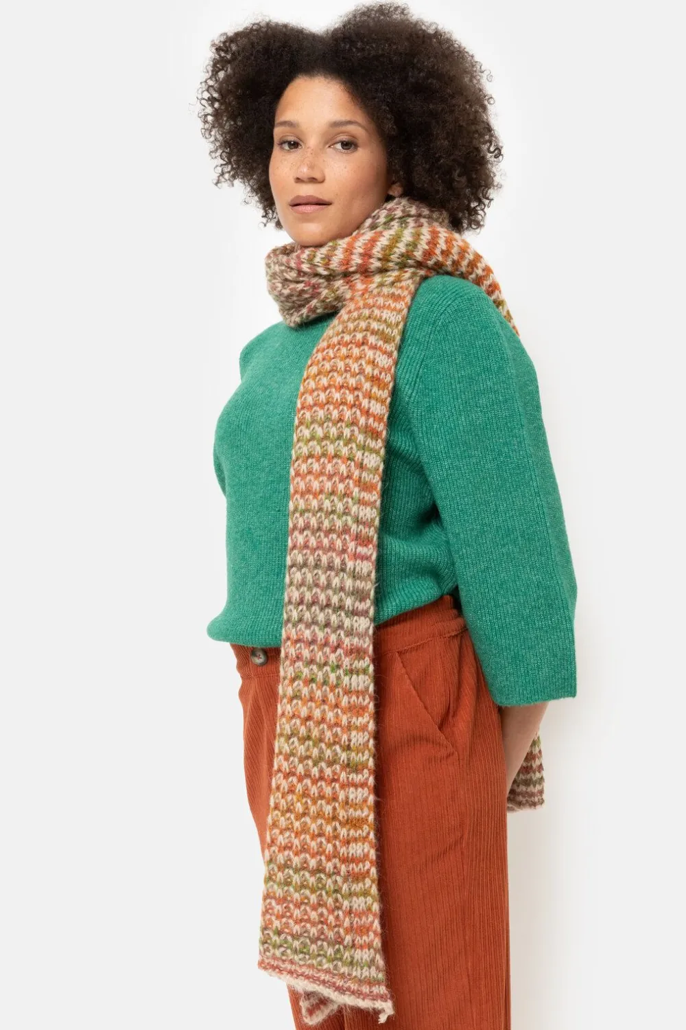 Bruin-Oranje Gestreepte Sjaal In Een Zachte Wolmix.Een Rechthoekige Knit Met Een Handgebreide Look.Style Trendy Met Een …
